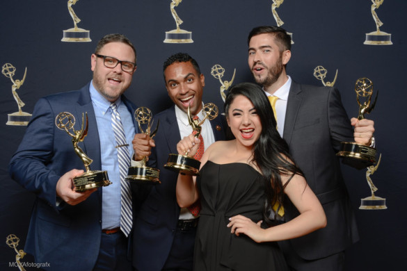 Featured photo: COM alumna Norma Lopez (pictured second from right) with members from Vanishing Pictures were awarded an Emmy in the Sports-News Feature/Segment category in the Spanish contest. Photo courtesy of Norma Lopez.