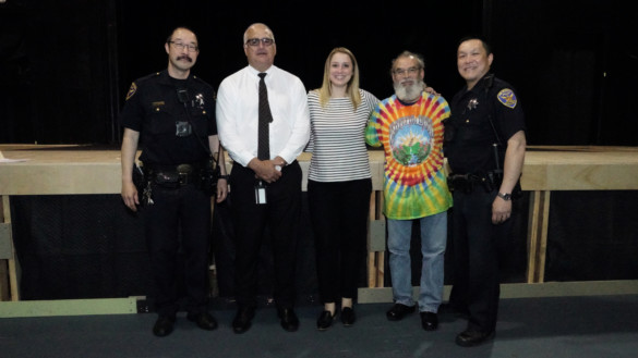 Though the night was mostly focused on listening to the SFPD representatives, students were asked to join in on a few demonstrations of combative defensive techniques. Students pantomimed putting their peers into headlocks, scraping their ankles with their feet, and stomping on their toes, with encouragement to hit the ground with a loud, cathartic thump.