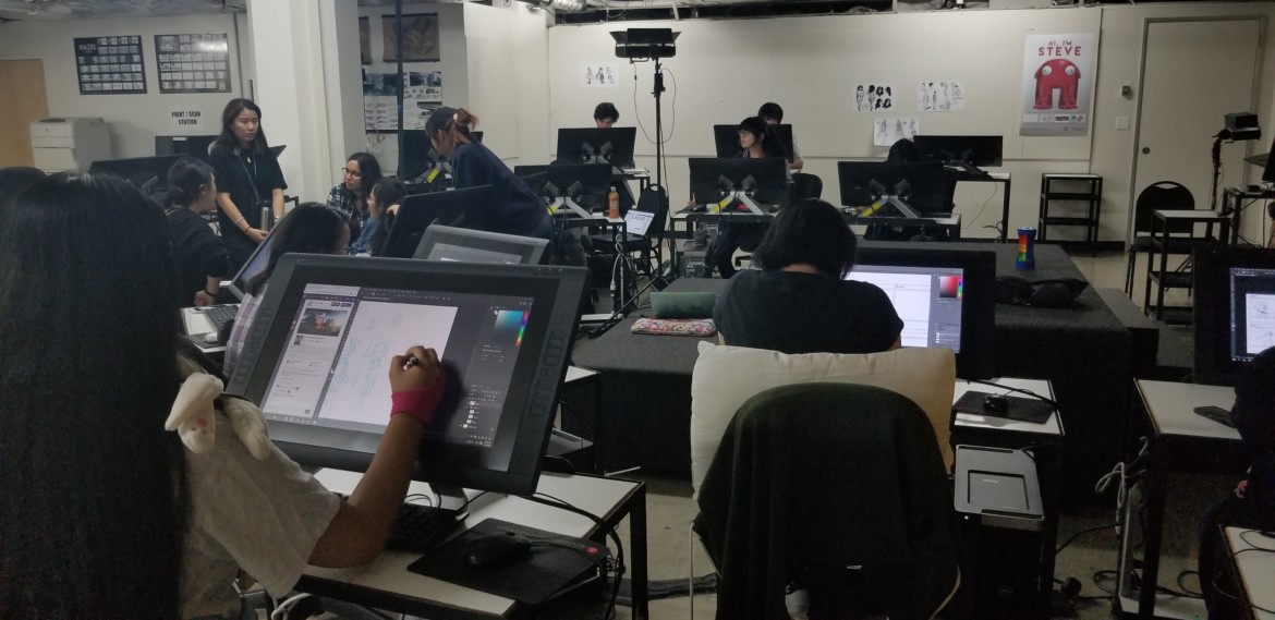 The basement of 180 Montgomery Street was humming with activity all through the night of Friday, Oct. 5 and into the next afternoon, as students from the School of Animation & Visual Effects flexed their chops in the 2018 24-Hour Animation Contest. In its 16th year, the remote competition featured 219 teams that represented 49 schools located in nine different countries.