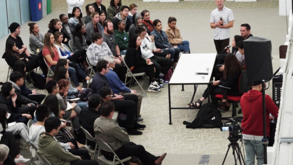 The necessity of speaking English, and the challenges of working in the U.S. as a non-native English speaker, was another central topic of discussion. Chung, who has “a lot of international friends that are not as fluent in English” like him, said, “it’s that your level of efficiency in English does not matter, as long as your attitude is there. I’ve known a lot of students that were so scared, they didn’t even go out and challenge themselves, and that’s what didn’t help them to get an internship or a job. The ones that I did see that were thriving in a work environment were the ones that were eager to get into that environment.”