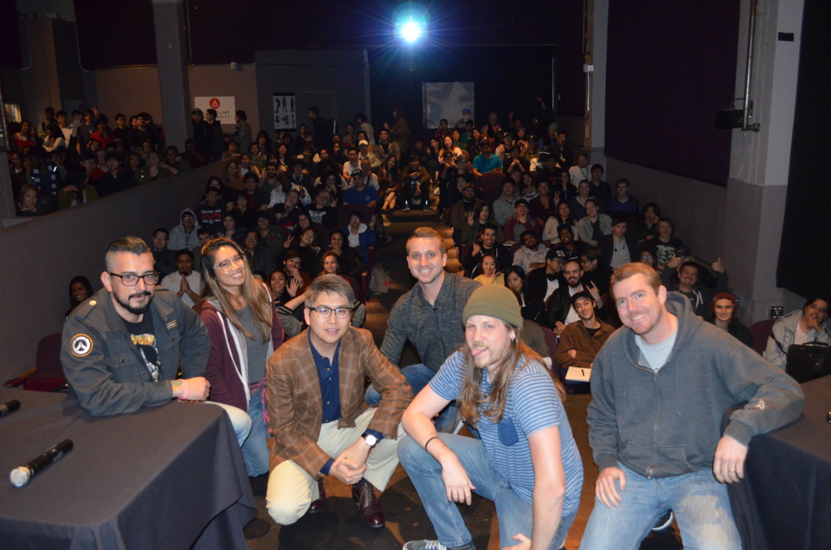 Artists and designers from Blizzard’s “Overwatch,” “World of Warcraft,” and “Diablo” teams presented at the 79 New Montgomery Theater. Pictured: Nate Bowden, Michelle Rosell, Steven Chen, Daniel Briggs, Kenny McBride, and Kevin Rucker. Photo by Bob Toy.