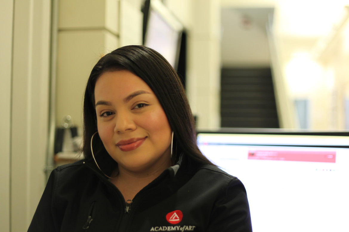 As one of Academy of Art University’s Campus Hosts at the School of Acting, Maria Gonzalez will tell you she’s “responsible for the safety of the students and making sure the building is all good.” But, in other more subtle ways, she also looks out for the wellbeing of everyone who walks past her post, the security desk that faces the front doors at 466 Townsend.