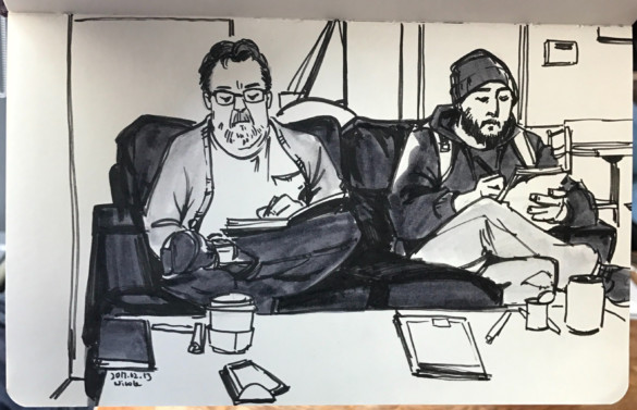 Ink sketches from Nicole Li’s lunchtime sketchbook. Photo courtesy of Nicole Li.