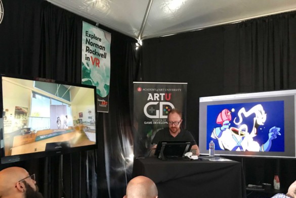 The Norman Rockwell VR Experience was the Academy’s main contribution but it also brought in The Art of Game Design, a gallery of 2-D and 3-D art, a demo loop, and select pieces from Spring Show that outlined the entire game development process from concept art to user experience and artificial intelligence coding. Brian Hess, GAM associate director, said they brought “as many pieces as they could.”
