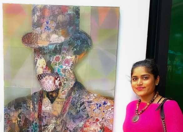 By melding the artistic and analytical, Doongarwal’s work isn’t just eye-catching, it’s also thought-provoking. She was recently featured in a group exhibition called “Reflections of Home,” hosted by the Oakland Asian Cultural Center. A total of 18 female artists of color from across the Bay Area submitted art that reflects what home and belonging means within their own immigrant experiences. In the work shared from her upcoming thesis collection, Doongarwal’s portraits focus on the British colonization of her ancestral India. Strewn together out of paintings, photographs, fabrics, and digital prints, the fragmented presentation emphasizes the cultural overlap that houses Doongarwal’s belief that, inherently, people are more alike than they are different.