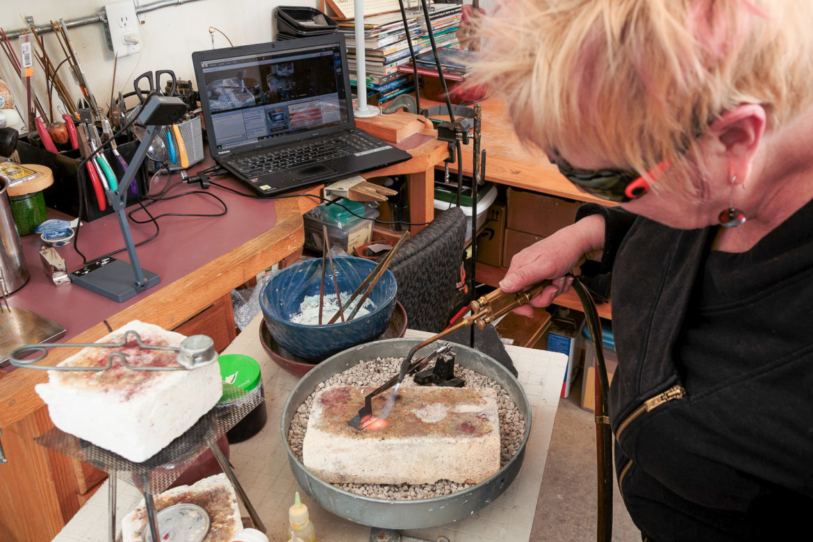 Everything I did that was fabric-related became three-dimensional. I almost never did flat things. I loved boxes and containers and my fiber work went that direction. Fast forward a few years, we moved to Montana and my mother-in-law was taking a lost-wax casting class with a local sculptor. She said, “You should come and try it.” Since everything I was doing in fiber was 3-D, doing metal, I thought, “Okay, I’ll try it.” When I studied with the sculptor, she never told you exactly why you’d use a certain tool. She’d say, “Because it works,” and that wasn’t good enough for me. So, I signed up for a goldsmithing class at the community college to learn the “why.” And here we are now. It’s just this crazy series of rabbit trails–if you told me in high school I’d end up as a university art teacher, I would have thought you’re crazy.