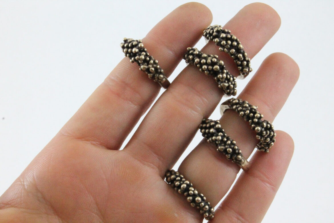 For Mireshghi, jewelry-making is an opportunity to convey an emotion or sensation. Her series, “Sublimation,” is inspired by her experiences with anxiety, and it explores how certain textures and repetitive actions can ease negative emotions. With a focus on various textures, ranging from metal studs to hammered bronze, her pieces evoke both empowering and soothing feelings she experienced while creating them.