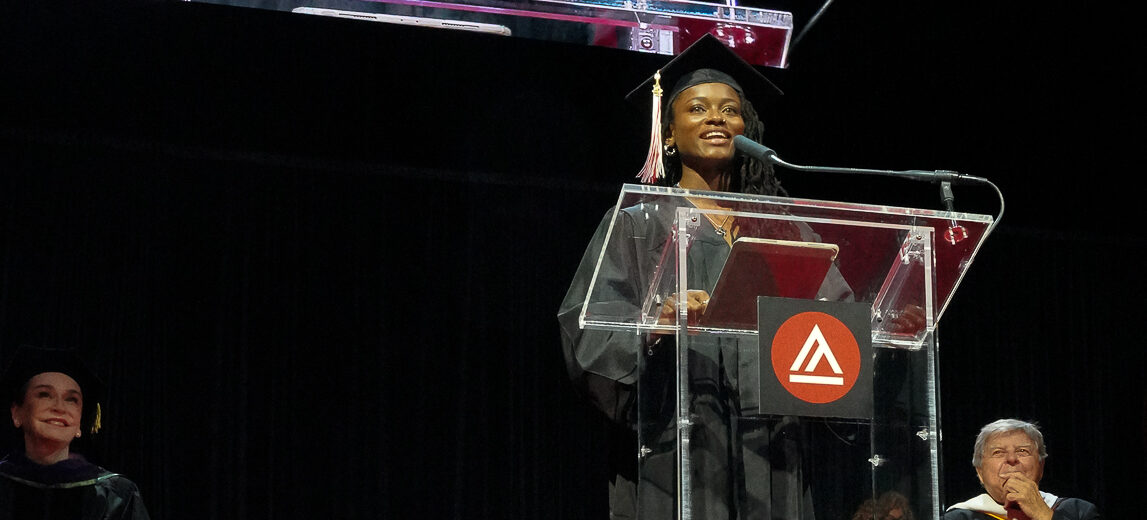Good morning and welcome fellow graduates, faculty, family, and friends. Thinking back, our first semester at the Academy was a transitional period in our lives. For me, I moved over two thousand miles away from home to a new city. I carried aspirations of learning what it took to become a film director, all while balancing being a full-time student and athlete. That moment in time was very intimidating for me, and maybe it was for you too. Some of you became the first in your family to go to college. Some of you experienced a major culture shock. And some of you decided to blaze a new, unexpected trail and pursue a career in art.