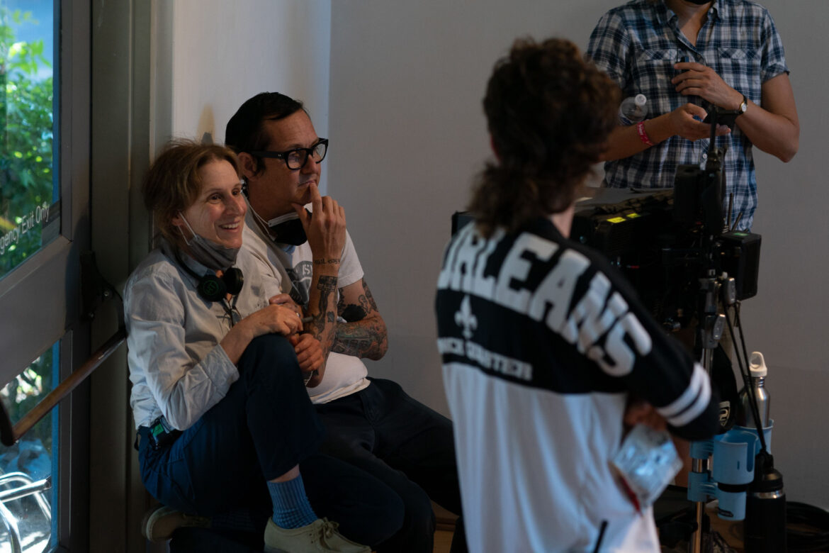 Michelle Williams and Kelly Reichardt on the set of “Showing Up.” Photo courtesy of A24.